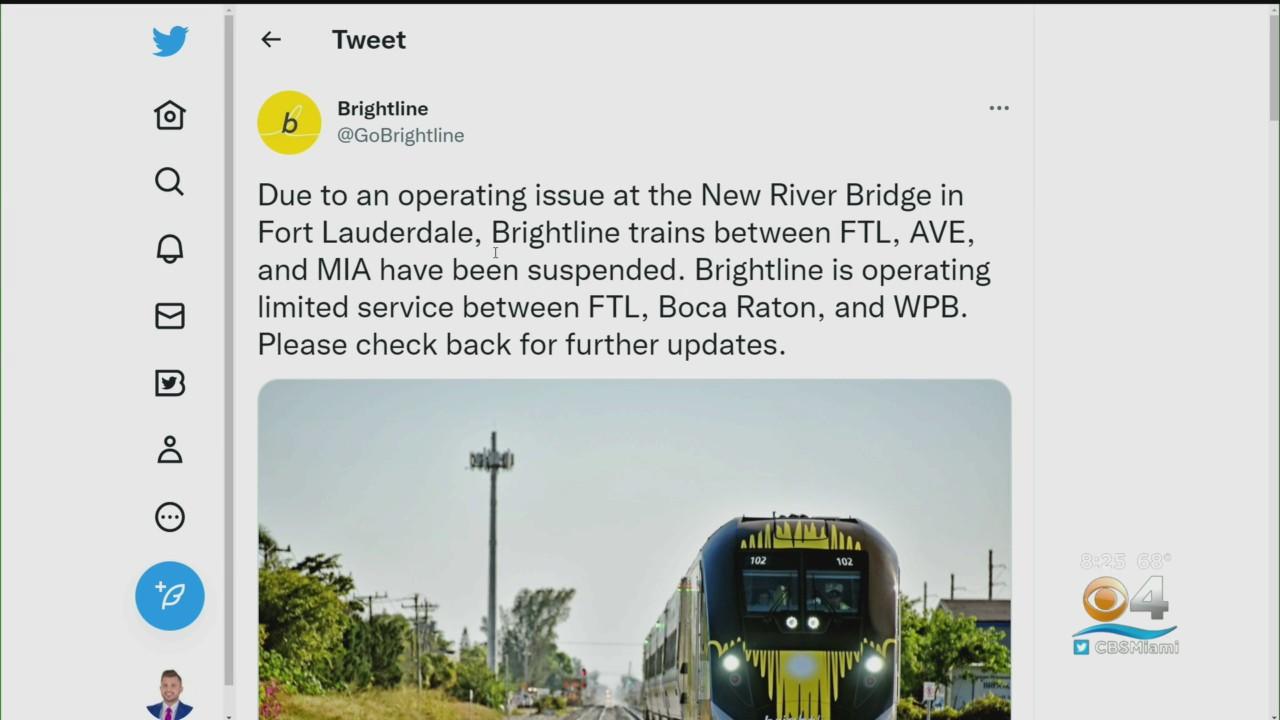 Due to an operating issue at the New River Bridge in Fort Lauderdale, Brightline trains between Fort Lauderdale, Aventura, and Miami were temporarily halted.