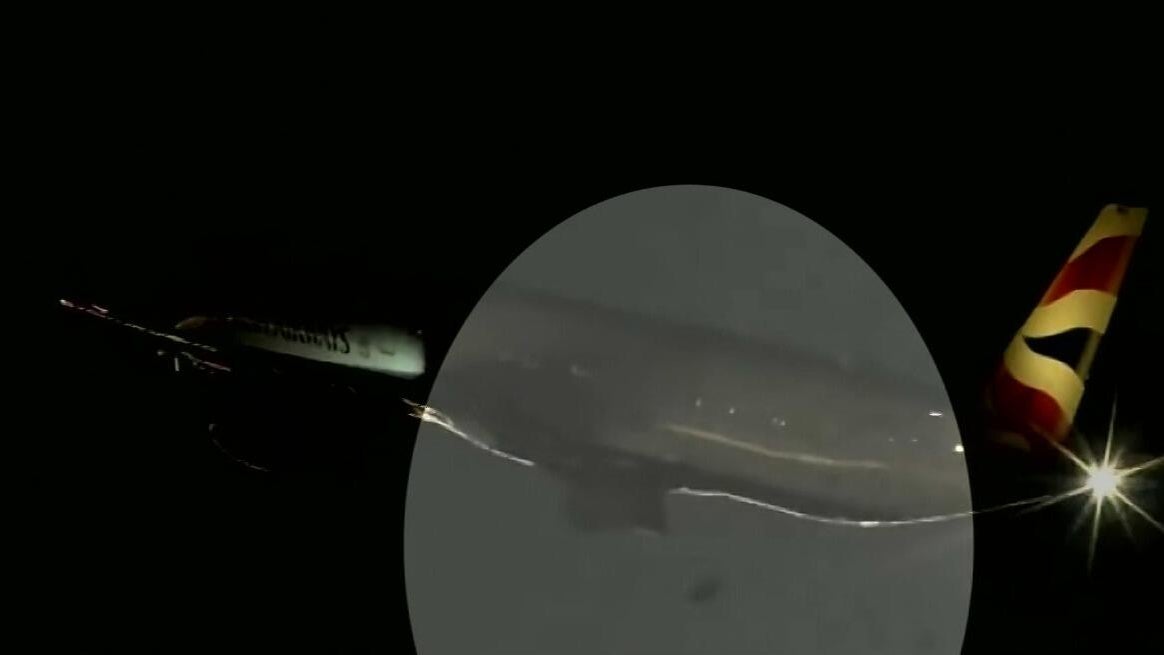 The airplane's spotting camera caught the incident on camera during takeoff.