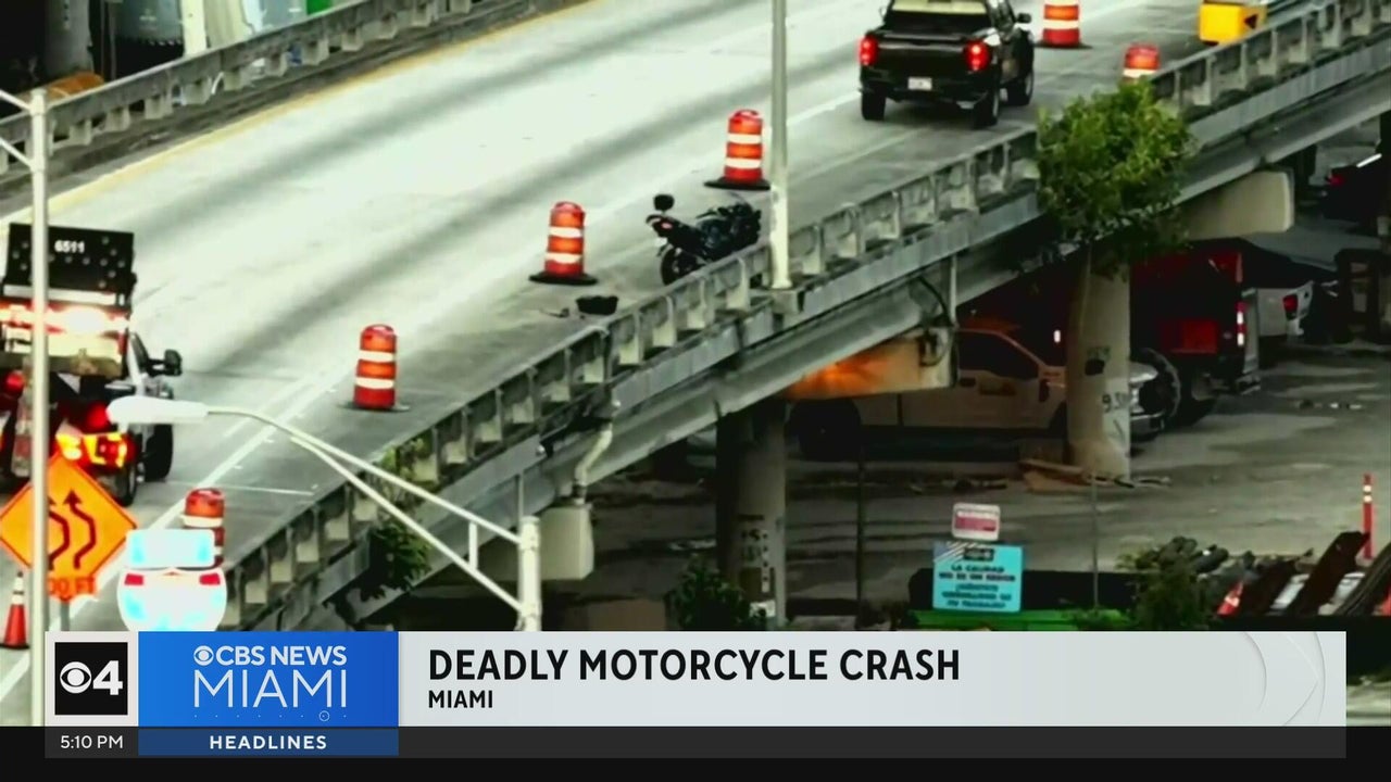 A motorcyclist died after crashing into a wall and landing in a construction zone on the MacArthur Causeway. Police are investigating the cause; the rider's identity has not been released.