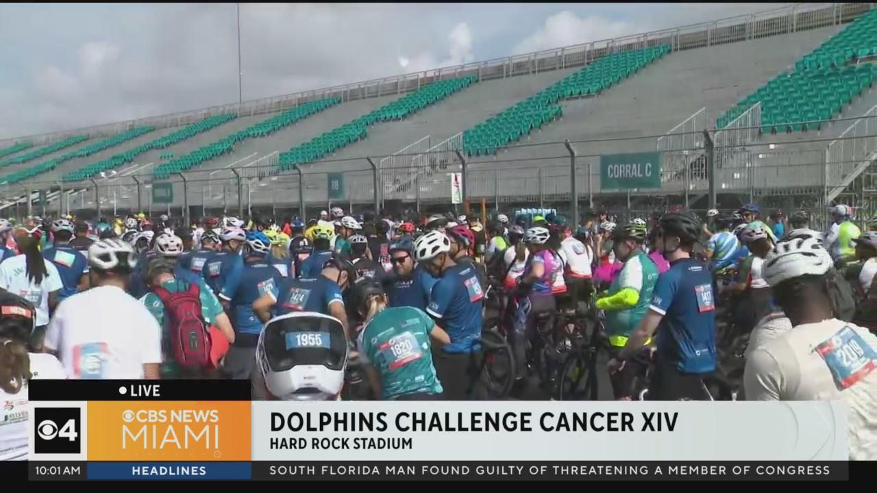 CBS News Miami's Trish Christakis was at Hard Rock Stadium all Saturday morning covering Dolphins Challenger Cancer, and she previews the 13-mile bike ride part of the event.