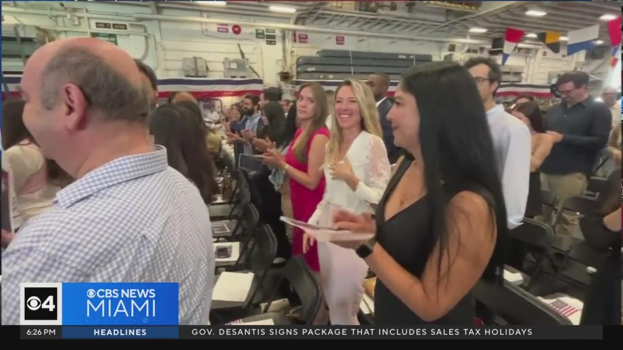 CBS News Miami's photojournalist Peter Miranda captured the US Citizenship Ceremony held aboard the USS Bataan at PortMiami during Fleet Week.