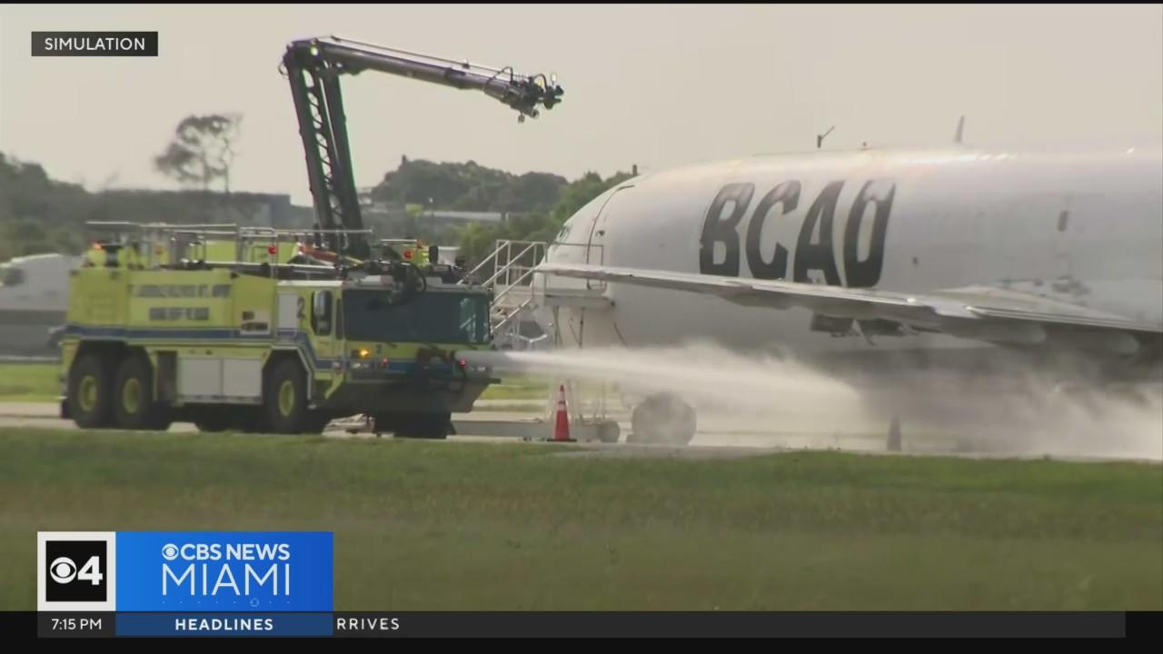 Emergency responders train on mock airplane collision on runway at Broward airport