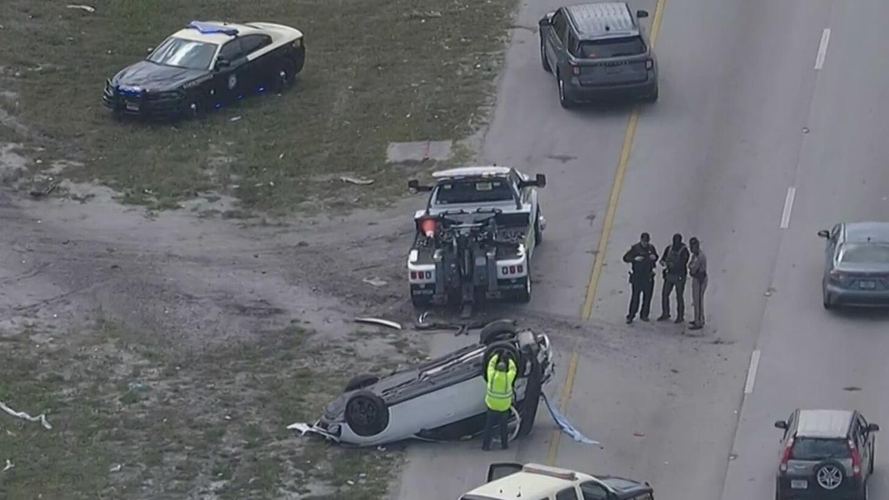 The Florida Highway Patrol said it was searching for a driver who flipped their vehicle after a pursuit on Interstate 595 in Davie on Thursday.