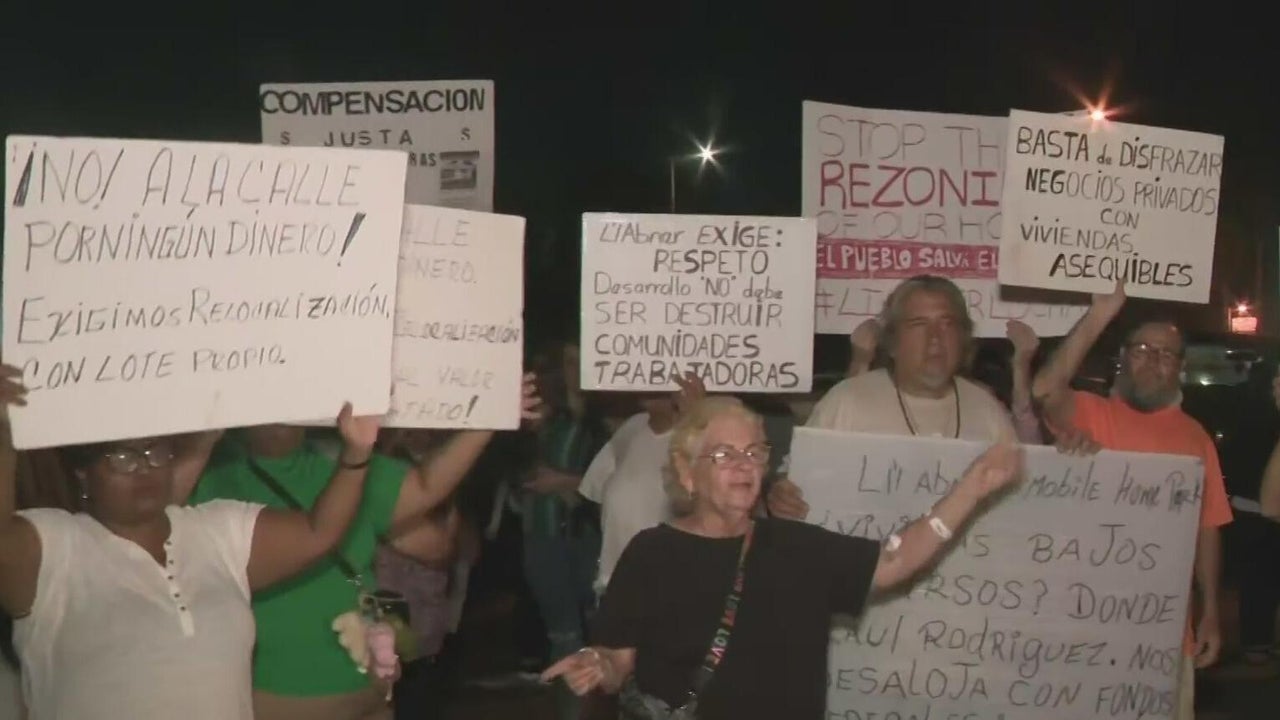 Dozens of residents at the Li'l Abner Mobile Home Park in Sweetwater took to the streets in protest Tuesday evening, saying they have nowhere to go as they face eviction by Wednesday.