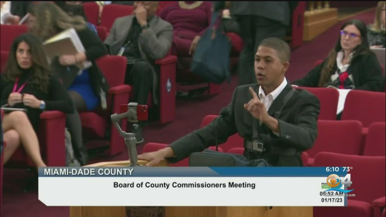 A man took the podium during the Miami-Dade County Commisison meeting to criticize the commissioners.