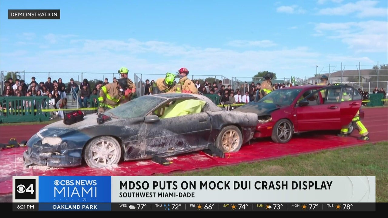Ahead of prom season, students witness a realistic mock DUI crash and rescue drill outside a Southwest Miami-Dade school. The demonstration, organized by the sheriff’s office, aims to highlight the life-altering consequences of driving under the influence.