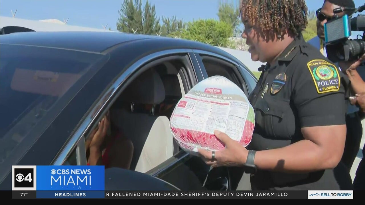 Miami Gardens Police officers hand out frozen turkeys instead of tickets