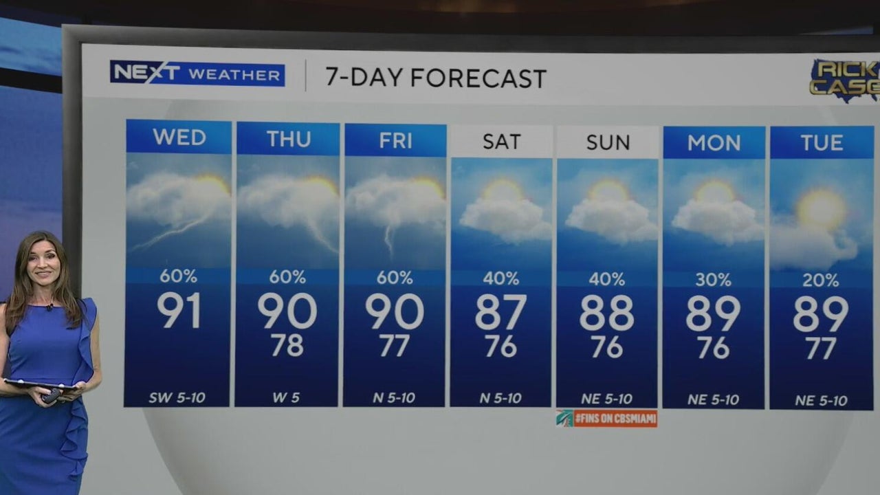 More showers, storms developing across South Florida as temperatures top out in low 90s