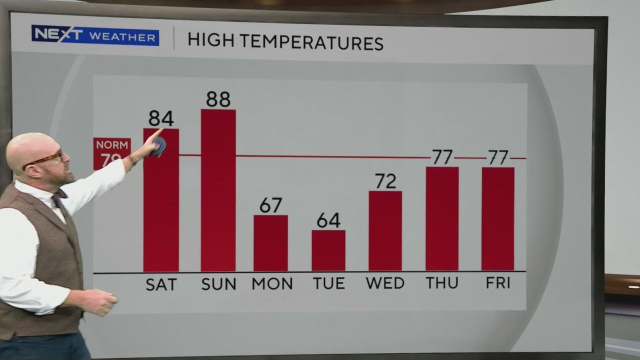 Temperatures this weekend will hit the upper-80s, looking to break a record on Sunday, Feb. 22. On Monday, a cold front moves through, dropping temperatures to the 60s.