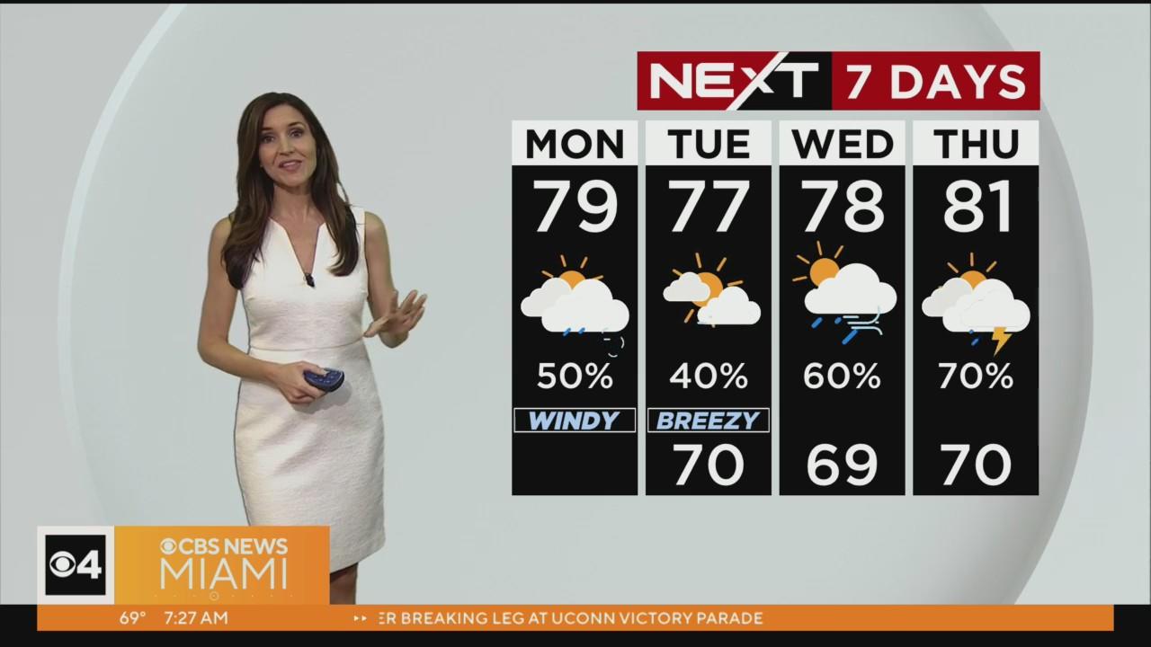 NEXT Weather meteorologist Lissette Gonzalez says showers will develop late Monday morning with the potential for some heavy downpours. Breezy showers and some storms will be possible throughout the day.