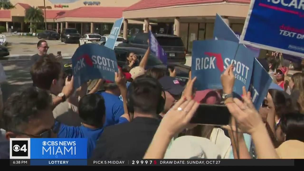 Supporters of Sen. Rick Scott and his opponent Debbie Mucarsel-Powell confronted each other at a voting site on Sunday.