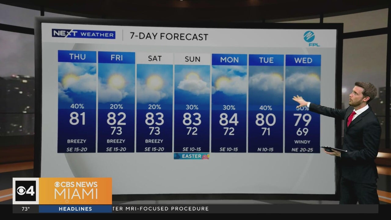 Scattered showers likely across South Florida on Thursday as warm, breezy conditions continue