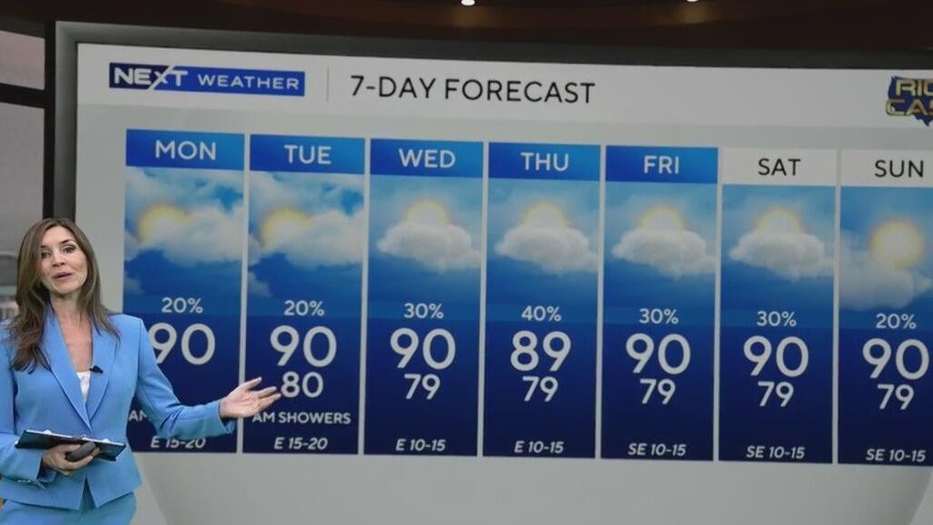 After a spectacular Panthers parade Sunday, South Florida wakes up to steamy temps, spotty showers, and rip current risks.