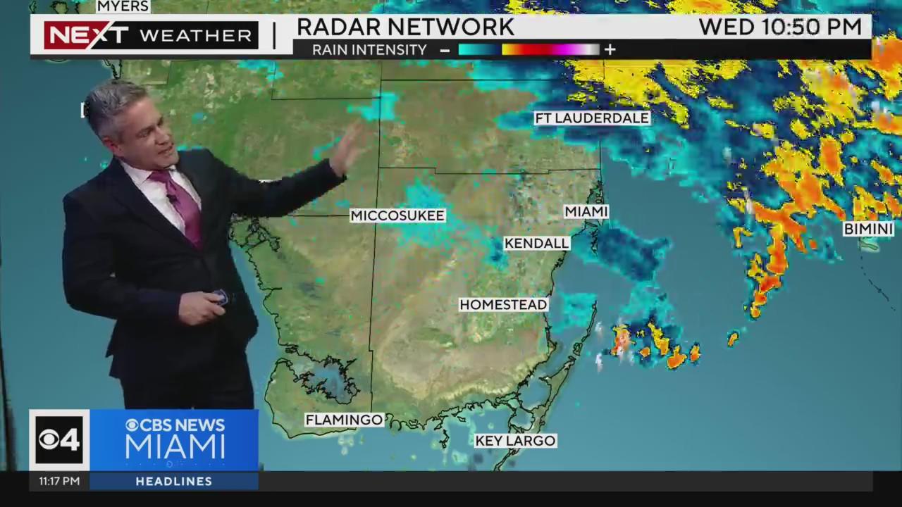 CBS News Miami's Chief Meteorologist Ivan Cabrera says to expect some light showers for the rest of Wednesday night as the Saharan dust begins to thin out heading into Thursday.