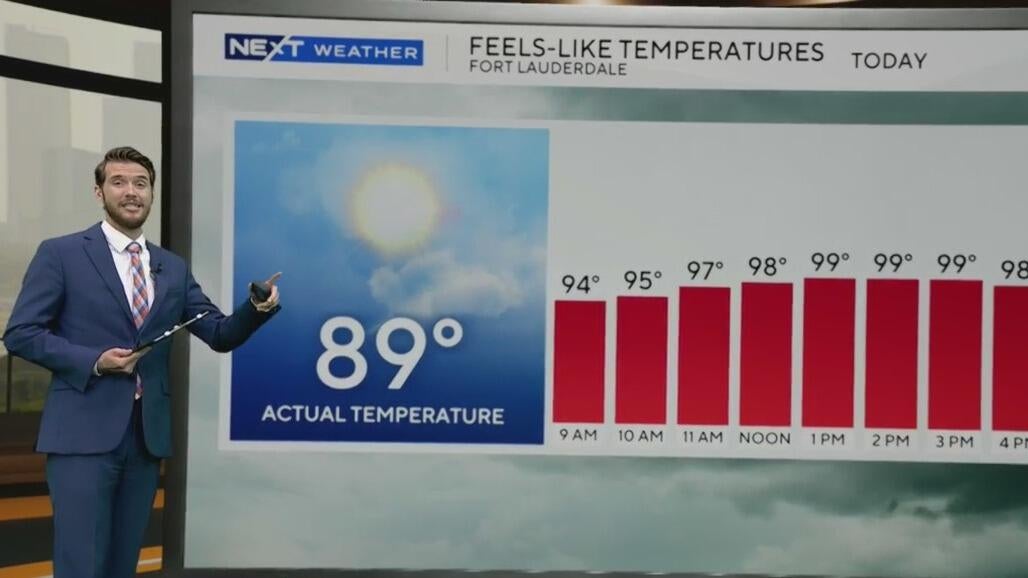 CBS News Miami's NEXT Weather Meteorologist Shane Hinton says there might be some isolated showers for Wednesday, as South Florida faces "feels-like" temperatures close to 100 degrees.