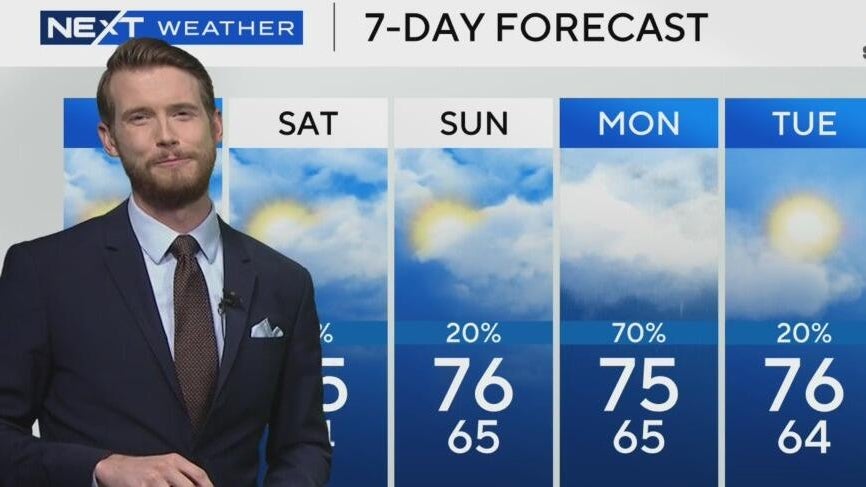 NEXT Weather meteorologist Shane Hinton says Friday will be partly to mostly cloudy with highs in the low 70s.