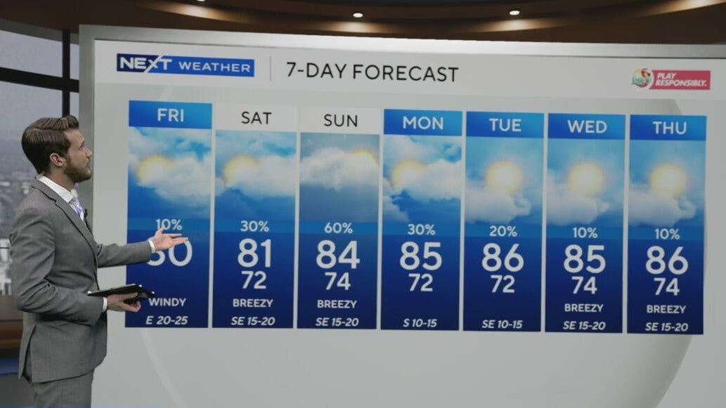 NEXT Weather meteorologist Shane Hinton says the windy conditions will continue through the weekend where there will be a higher chance of rain.