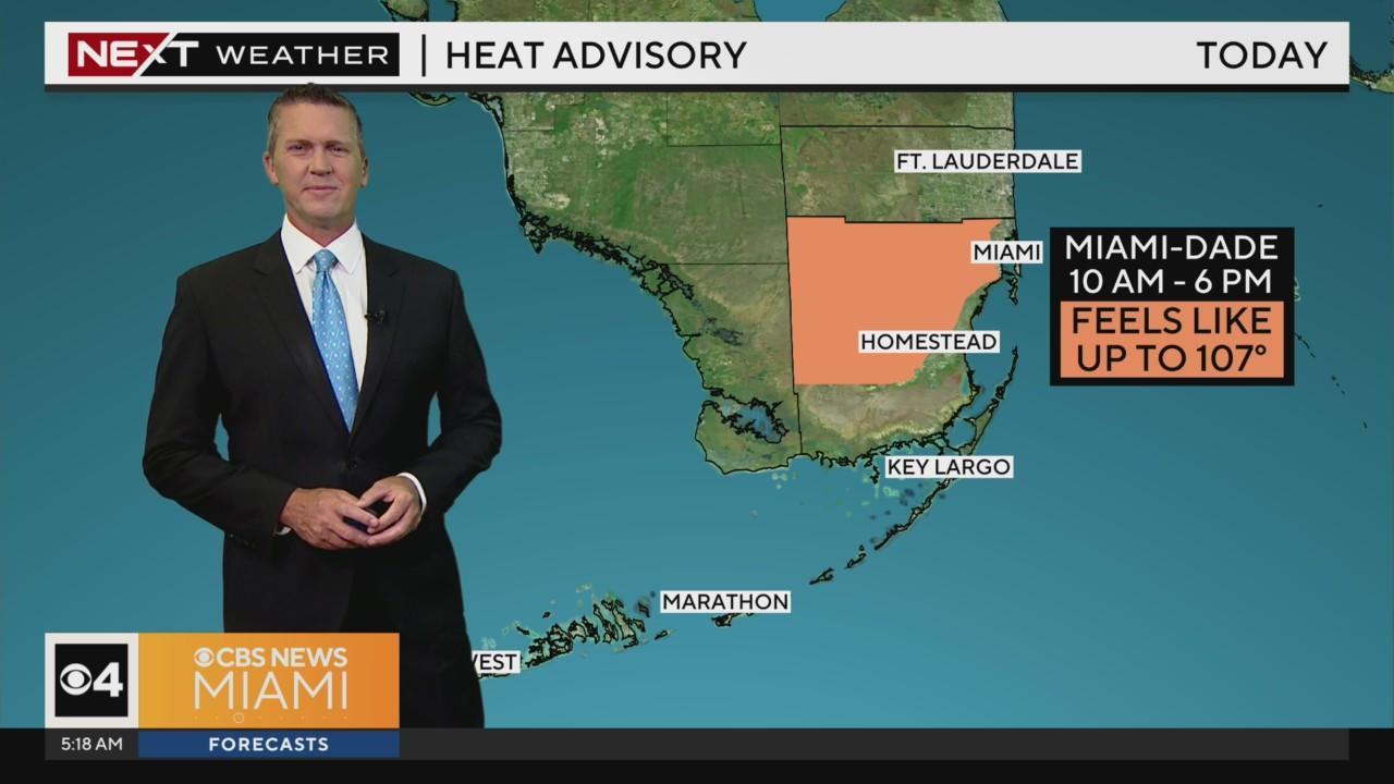 NEXT Weather meteorologist Dave Warren says a Heat Advisory has been issued for Miami-Dade as "feels like" temperatures will be 107 degrees in the afternoon.