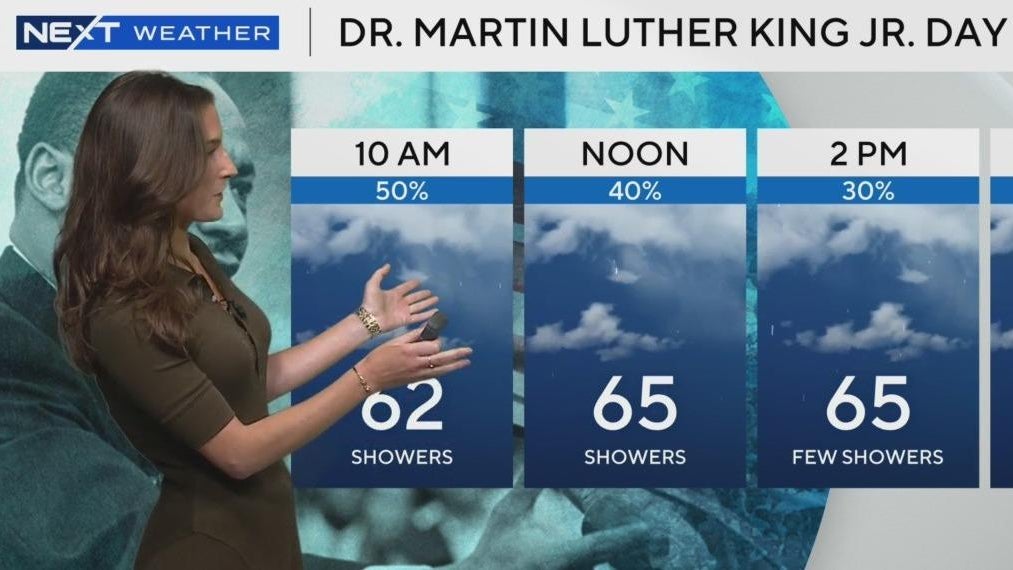 NEXT Weather meteorologist KC Sherman says the on-and-off rain will continue throughout Monday with afternoon highs only in the upper 60s.