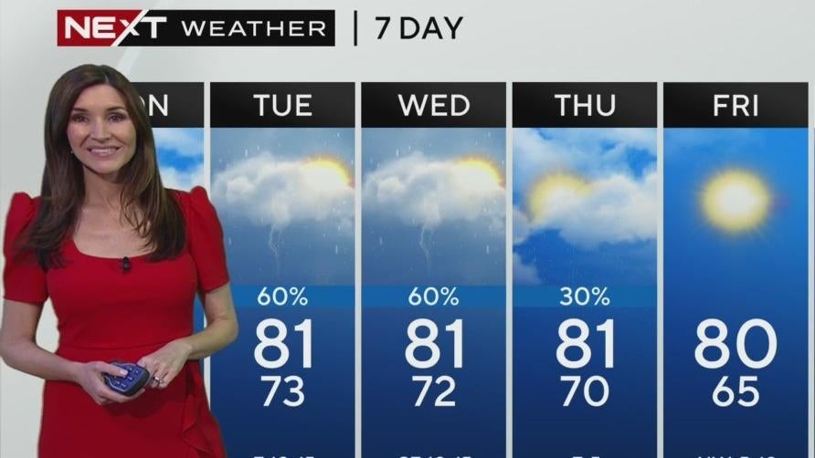 NEXT Weather meteorologist Lissette Gonzalez says expect passing showers on the afternoon breeze. The chance of rain is higher for Tuesday and Wednesday with more moisture in the air.