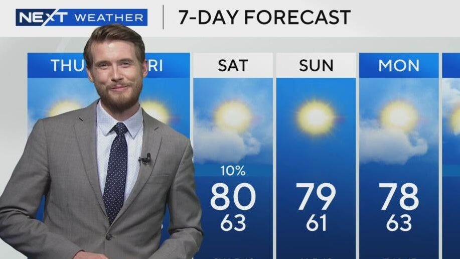 NEXT Weather meteorologist Shane Hinton says Thursday afternoon will be a mix of sun and clouds with highs in the low 80s. A cold front arrives late and it will lead to a cooler and less humid Friday.