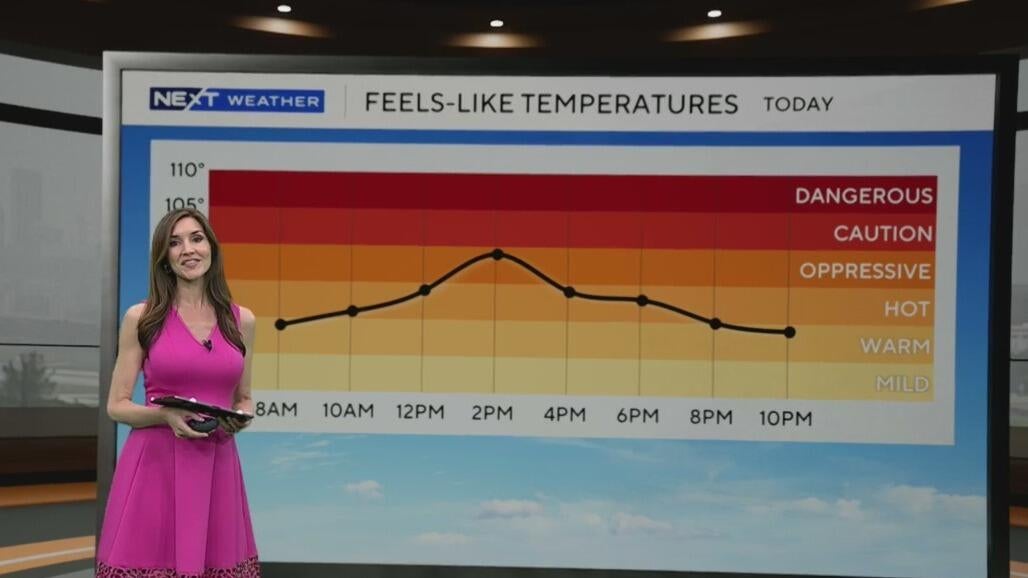 NEXT Weather meteorologist Lissette Gonzalez says Thursday will be dry and mostly cloudy. Highs will be in the upper 80s, with "feels like" temperatures in the mid to upper 90s.