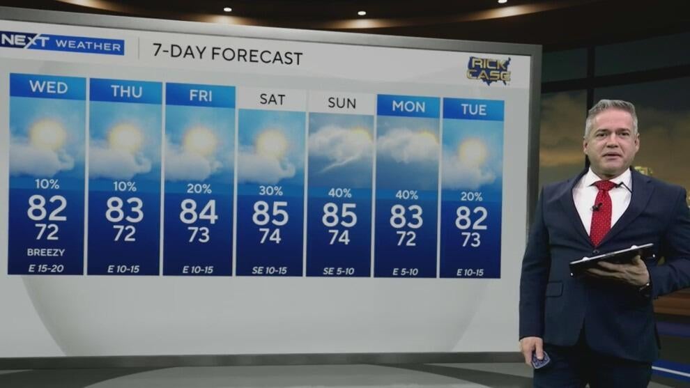 South Florida will see dry, breezy weather through midweek with isolated showers possible, but rain chances increase by the weekend. NEXT Weather chief meteorologist Ivan Cabrera has the latest forecast.