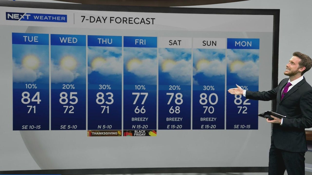 There's a bit of cloud cover across some areas of South Florida as a system moves through, bringing stray showers. Rain chances increase slightly ahead of Thanksgiving.