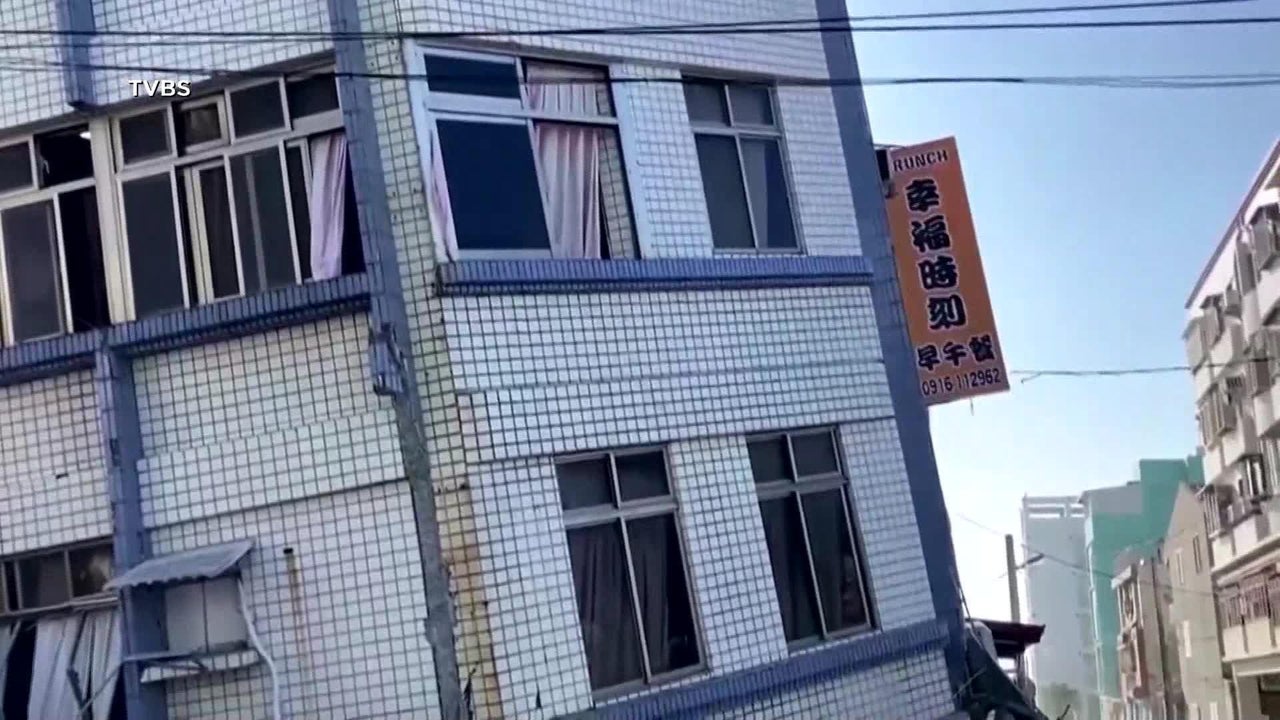 Taiwan Earthquake: Hualien building leans from 7.4 magnitude quake