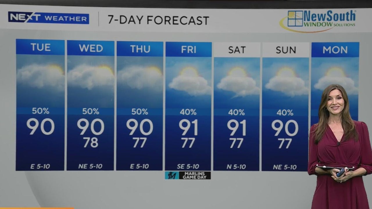 Temperatures to reach low 90s as scattered storms roll across South Florida