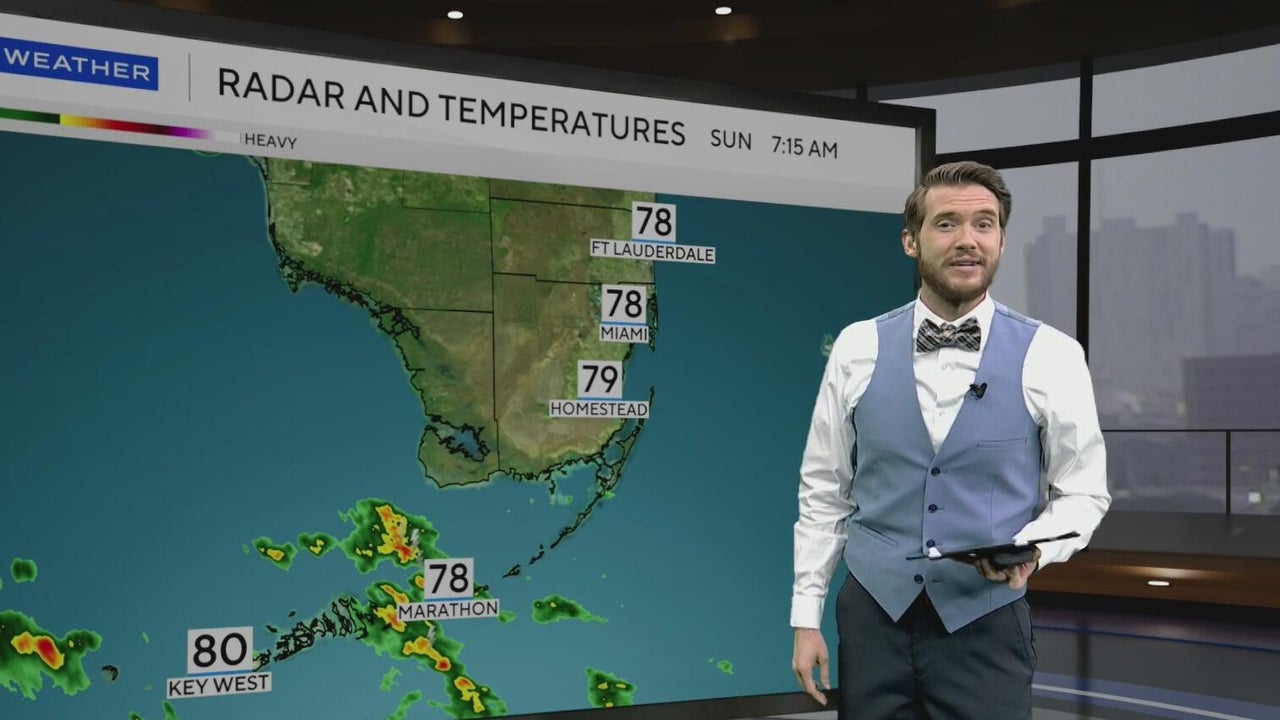 Temperatures will warm up to upper 80s with scattered showers Sunday afternoon in South Florida