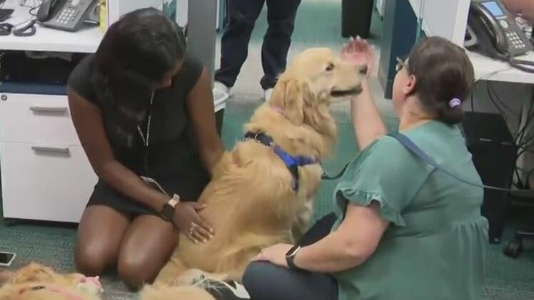 Therapy dogs visit the CBS News Miami newsroom