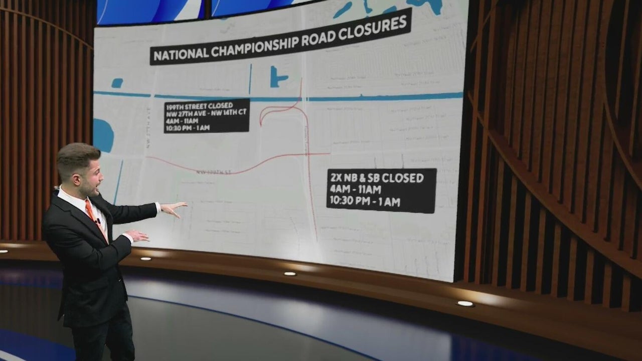 Roads were closed well-ahead of the College Football Playoff Championship Game around Hard Rock Stadium in Miami Gardens, and traffic is only expected to get worse as more and more people arrive to watch the University of Miami Hurricane play against the Indiana Hoosiers.