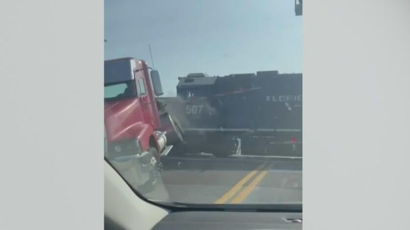 Train slams into truck stuck on tracks in Florida