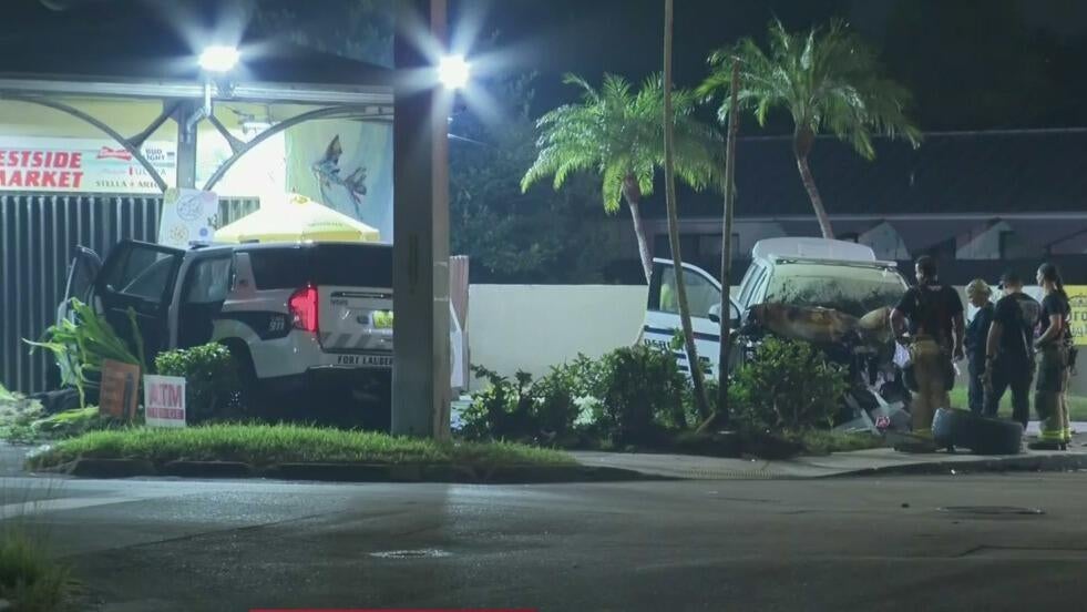 Two Fort Lauderdale police cruisers involved in crash, 1 caught fire