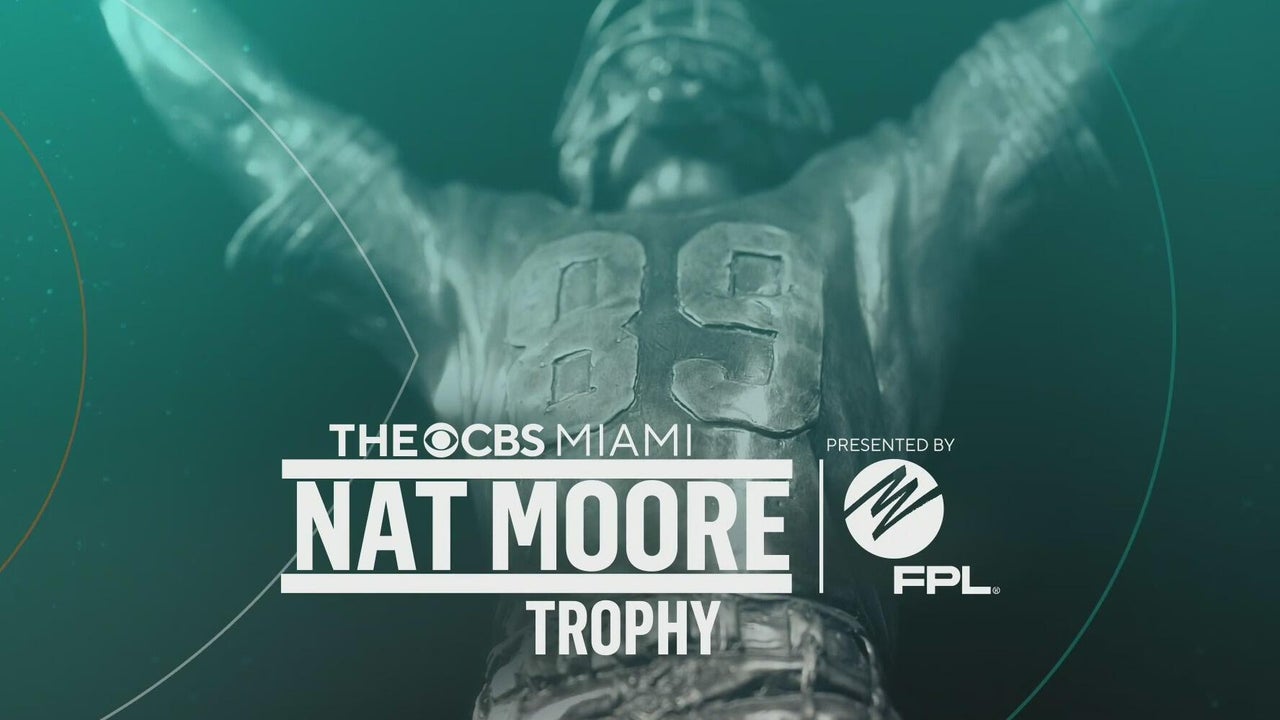 The CBS Miami Nat Moore Trophy recognizes the top high school player in any position and any school in Miami-Dade, Broward and Monroe counties who has positive character, leadership and meets all team standards for academics, sportsmanship and conduct.