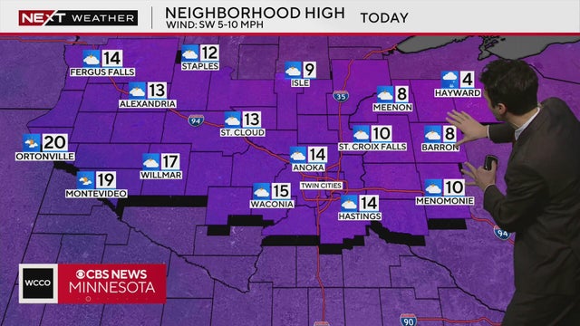 WCCO meteorologist Lisa Meadows says tomorrow will have increasing clouds and a high in the mid-teens.
