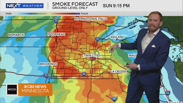 WCCO meteorologist Adam Del Rosso says it'll be a hot and hazy day as wildfire smoke will continue to make its way through much of the state until Monday night.