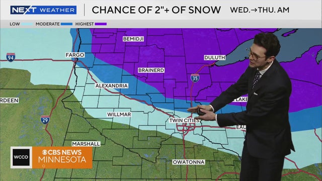 WCCO meteorologist Chris Shaffer says snow will move in Wednesday afternoon. It won't be much for the Twin Cities but could impact the evening commute.