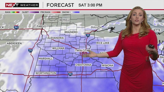 Next weather meteorologist Lisa Meadows says a winter storm that moved into Minnesota on Friday night will be out of the state on Sunday morning. A cold air mass will settle behind the system.