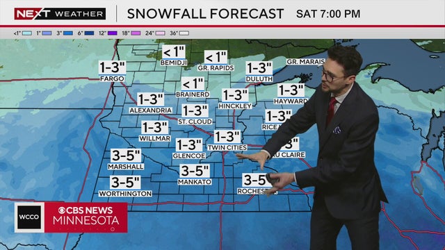 Next Weather meteorologist Lisa Meadows says the Twin Cities could see 3 to 5 inches of snow by the end of this weekend's winter storm.