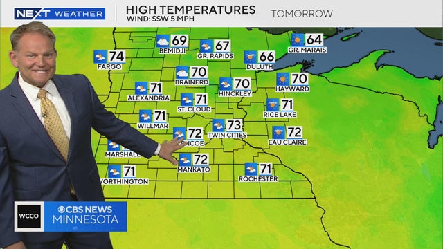 WCCO meteorologist Chris Shaffer says tomorrow will be partly cloudy with highs just above average in the low-70s.
