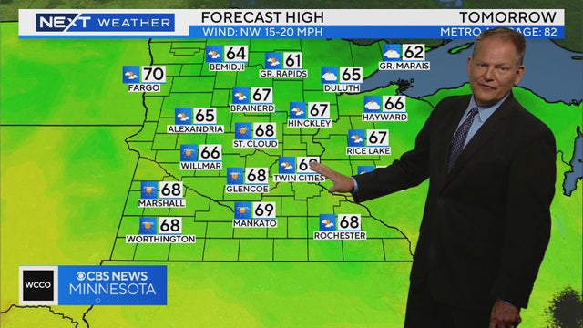 WCCO meteorologist Chris Shaffer says we'll stay dry tonight. It will be cool with lows falling back to the 50s, and closer to the 40s up north.