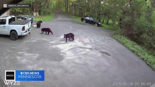 A woman from Maple Grove got the scare of her life when she realized a mama bear and her two cubs were rummaging through her trash can, and later took off after her dog.
