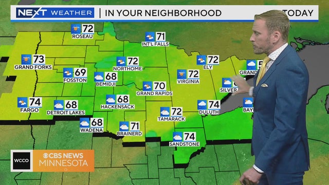 WCCO meteorologist Katie Steiner says highs will top out around 80 and it will be windy and humid.