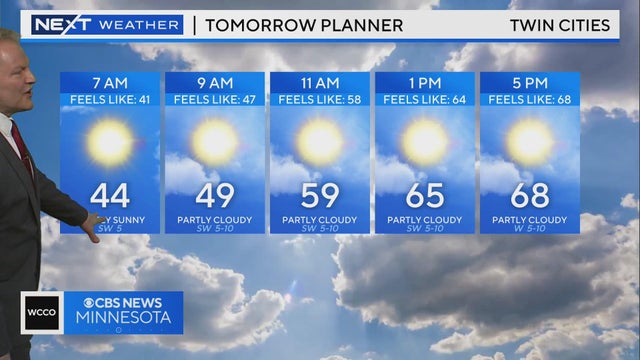 WCCO meteorologist Chris Shaffer says tomorrow will warm to near 70 with scattered showers possible later.