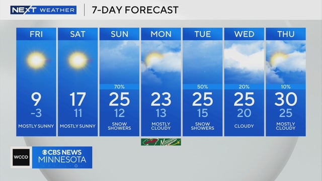 Saturday will be warmer with highs in the upper teens. That is still below average, but trending in the right direction, WCCO meteorologist Mike Augustyniak reports.