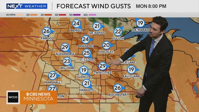 Monday will be breezy but warm. Tuesday will be cooler in the upper 40s with windy conditions and a few light showers, WCCO meteorologist Joseph Dames reports.