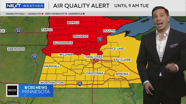 WCCO meteorologist Mike Augustyniak says our air quality alert will persist until 9 a.m. Tuesday. Smoke will slowly clear from west to east behind the cold front.