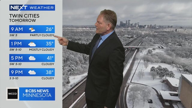 By tomorrow afternoon, we start to melt the weekend's snow. Highs could hit the low 40s, which is average, WCCO meteorologist Mike Augustyniak reports.
